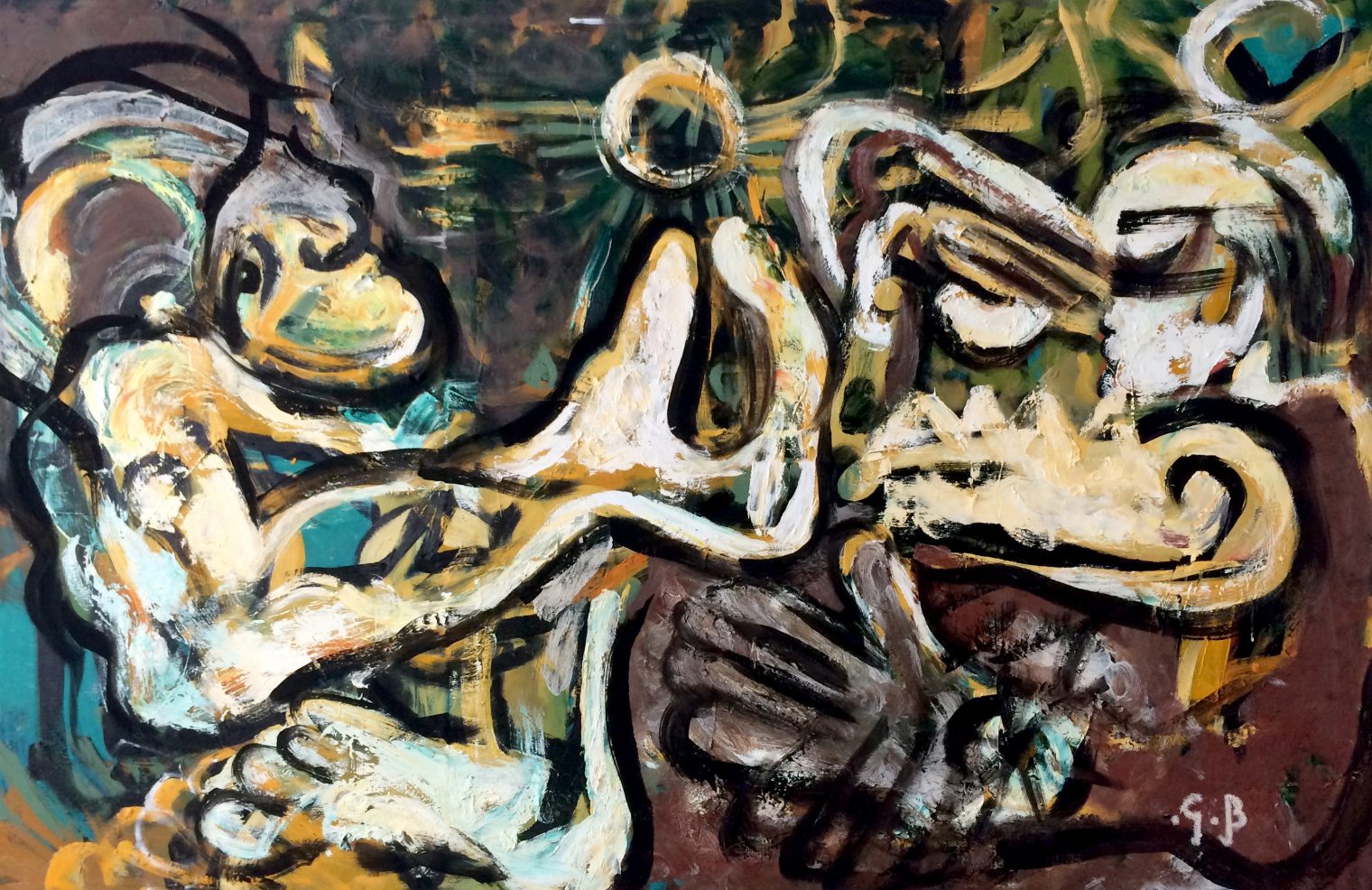 “I am happily confused about my painting on many levels, but this is part of how I am using my work, as a tool for knowing and becoming. The experimentation with the blurred lines between matter, gesture and thought-forms, constantly revolves in the elaboration of my process….